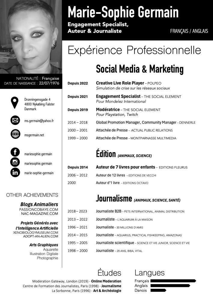 #mariesophiegermain AI anglais animaux autrice bilingue blog blogger community management Community Manager content writer creative live role player dinosaures engagement engagement specialist english evangelist français gestion de crise Global Promotion Manager international journaliste magazine marie-sophie germain marketing moderator modérateur modératrice NAC Nouveaux Animaux de Compagnie playstation presse promotion manager publication rédaction réseaux sociaux site internet social media traducteur traduction traductrice translation translator webmaster éditions